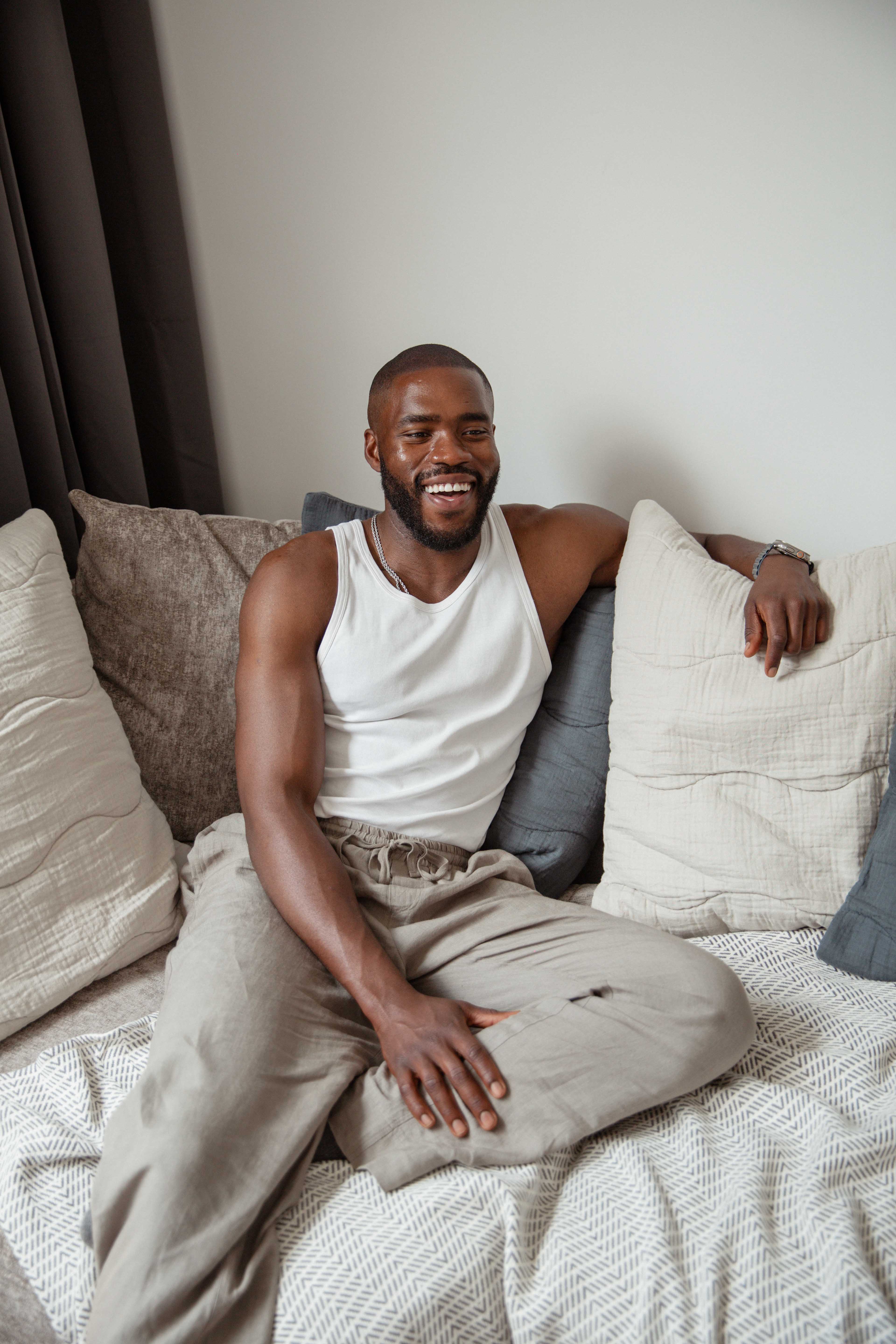 We're excited to introduce our new cosy series, Pillow Talk, where we'll be talking all things rest and relaxation with our interesting (and busy) guests. To kick things off, we're getting into bed with Bridgerton star, Martins Imhangbe.